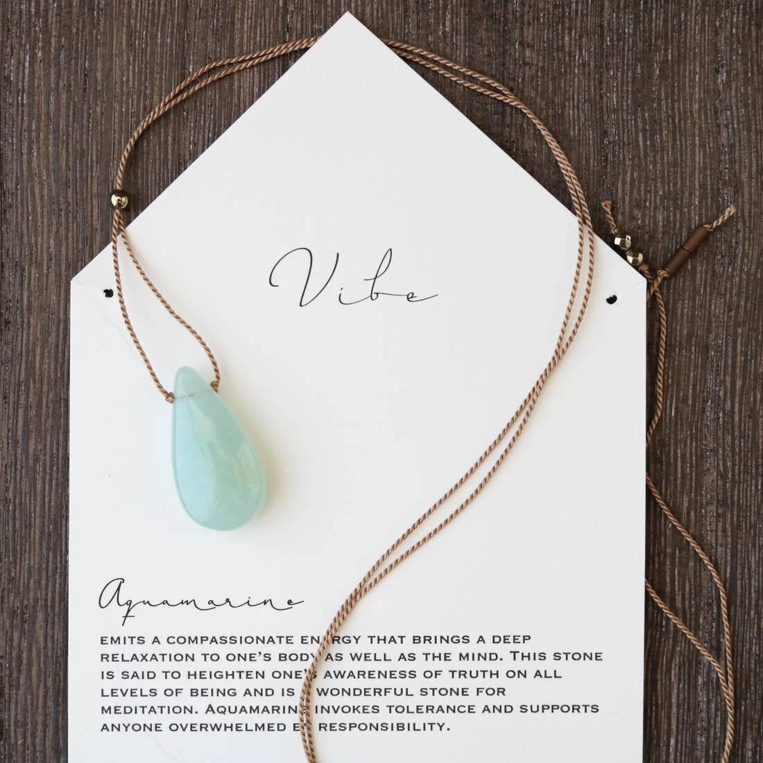 Vibe is...one-of-a-kind, mindfully handcrafted necklaces & bracelets. Made with carefully-curated natural gemstones & silk. Each one is hand-knotted and fully adjustable. Every piece comes on a beautiful custom card, handcrafted from fine sustainable papers & containing the meaning of the featured gemstone.