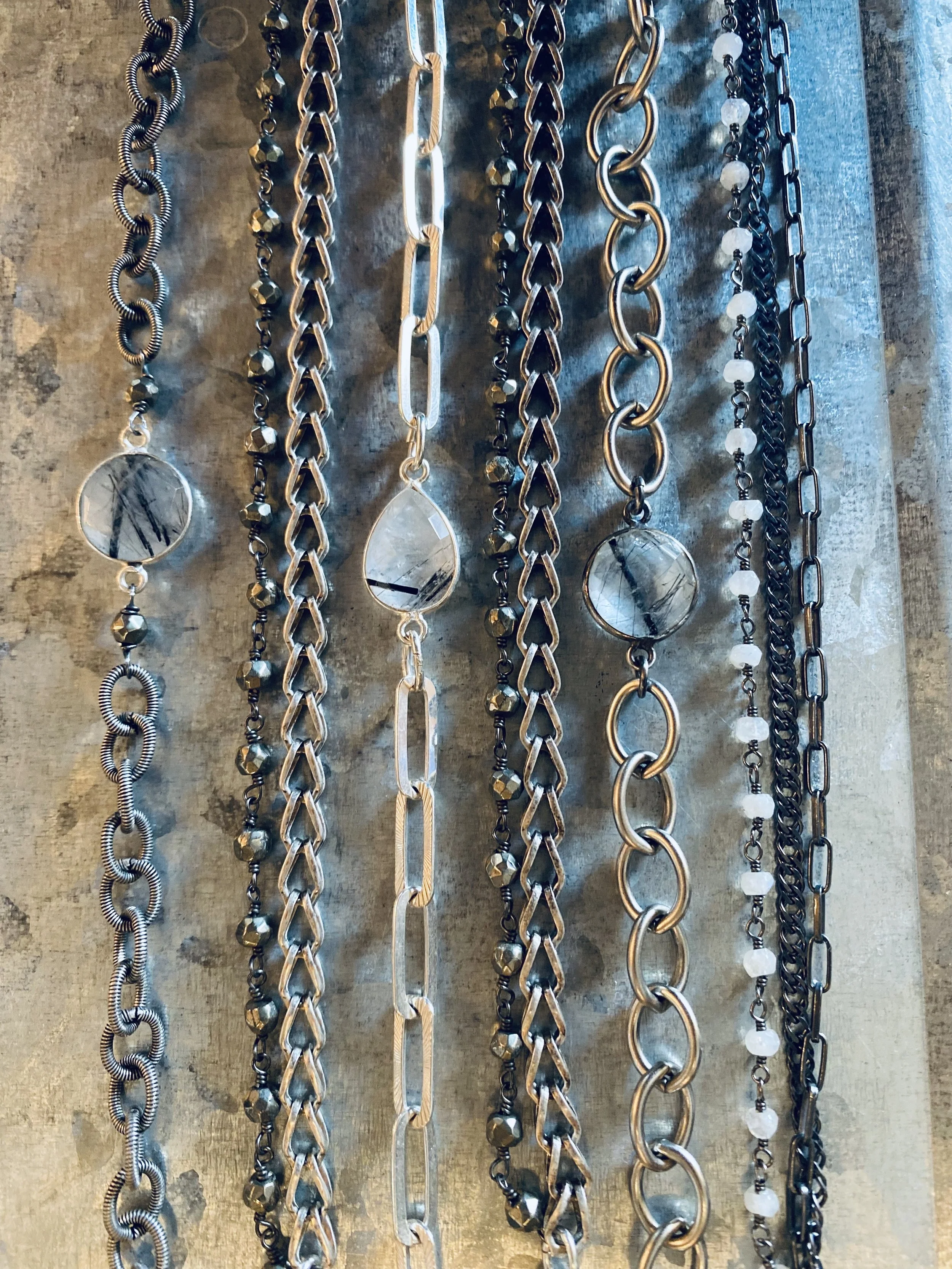 A constant cloak of protection. Tourmalinated quartz is thought to provide a balancing of yin/yang energies. The black tourmaline also works to reconnect you to the Earth with its grounding properties.